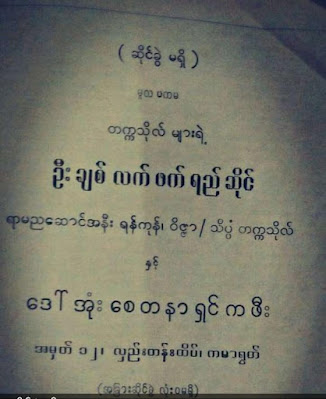 ေဒၚအုန္း။ ။ ငါ့တူ ငါ့သားတို႔ က်န္းမာခ်မ္းသာၿပီး ရန္ကုန္တကၠသိုလ္ႀကီးရဲ႕ ေက်ာင္းသားေဟာင္းေတြပီပီ ဘ၀ရည္မွန္းခ်က္ ဆႏၵမ်ား ေအာင္ျမင္ထေျမာက္ၾကပါေစ။ စာေပ၊ အႏုပညာကိစၥမ်ား ထြန္းေပါက္ၾကပါေစကြယ္။